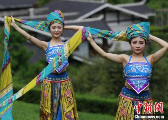 5月3日,湖南張家界武陵源黃龍洞風(fēng)景區(qū)的青年員工身著盛裝,上演了一場(chǎng)精彩的苗族頭帕秀,喜慶五四青年節(jié)的到來(lái)。